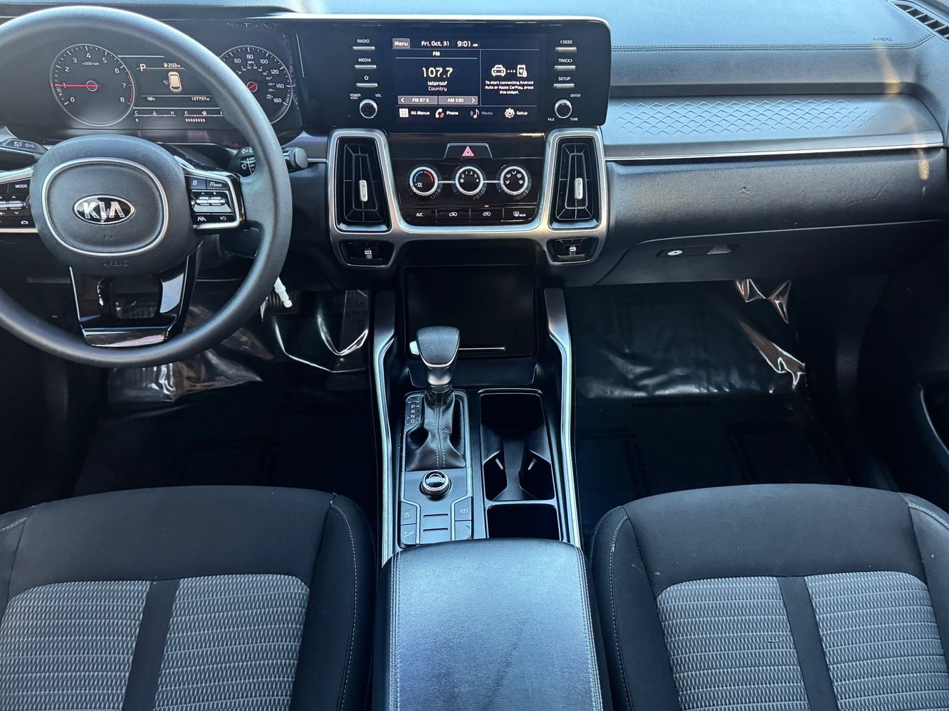Front seatback upholstery: Plastic front seatback upholstery