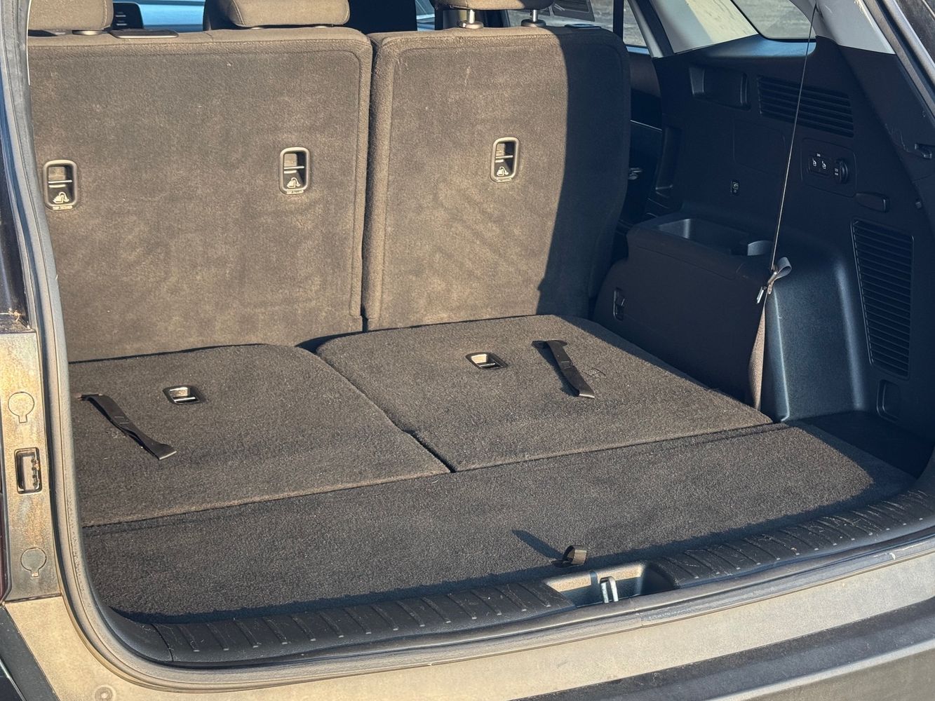Third-row seatback upholstery: Carpet third-row seatback upholstery