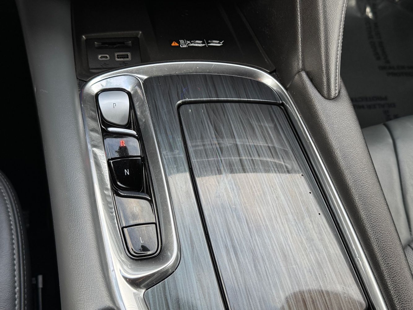Console insert material: Simulated wood and leather console insert