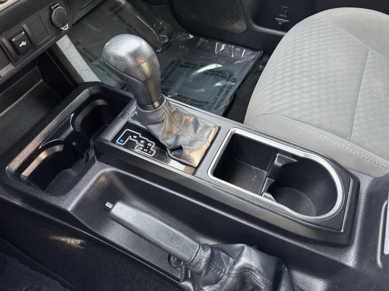 Floor console storage: Covered floor console storage